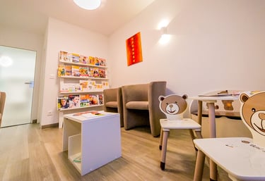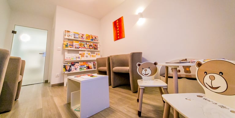 In unserem freundlichen Wartebereich können Sie sich entspannen, während sich die Kleinen in unserer liebevoll gestalteten Spielecke beschäftigen.