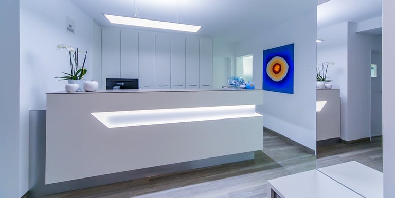 Unser Empfangsteam begrüßt Sie mit einem Lächeln und sorgt für einen reibungslosen Ablauf Ihrer Behandlung.